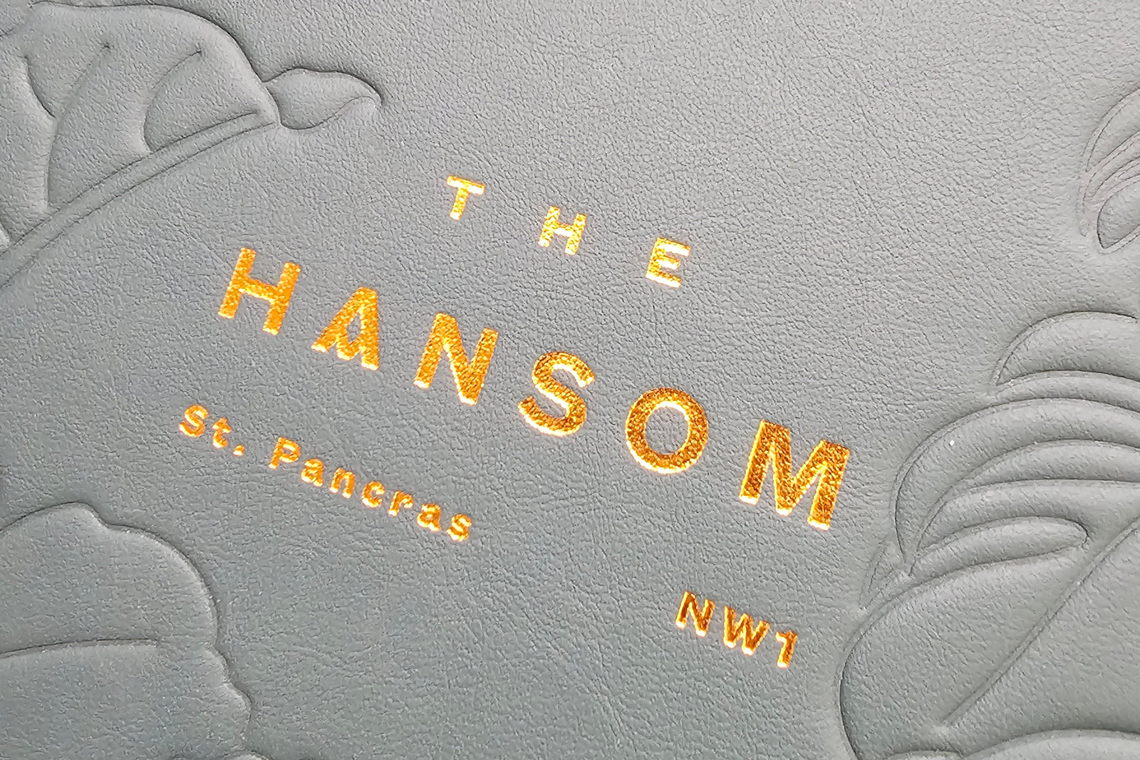 This technique works beautifully on our premium Rome and Paris materials. Blind debossing uses carefully controlled heat and pressure to create a subtle, elegant indented impression of your logo directly into the menu cover — a sophisticated finish that catches the light without any added colour.